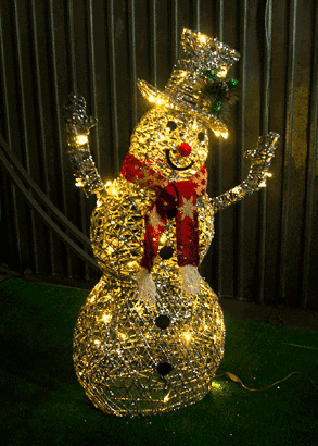 Новогодняя композиция "Снеговик с внутренней подсветкой". Теплое белое свечение. 100 см