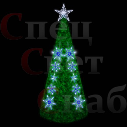 Светодиодная уличная гирлянда на ель бело-синие снежинки